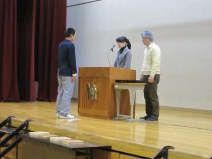 次に紹介するのは、最初の生徒の壇上の様子、卒業の歌を歌う卒業生の様子です。