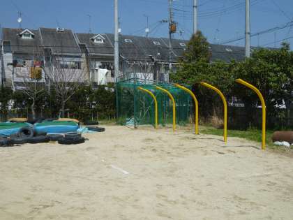 グランド低鉄棒・グランド高鉄棒及び砂場・グランド横菜園です。グランドの北東側に鉄棒や砂場があることをご存知でしょうか。案外,知られていないかもしれませんね。