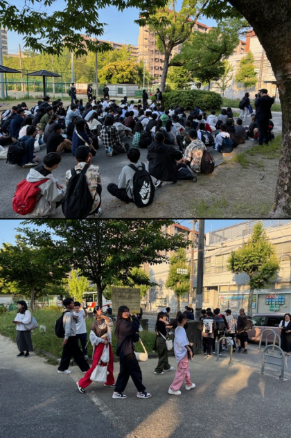 おはようございます。待ちに待った修学旅行の朝を迎えました。早朝にも関わらず3年生全員が時間に遅れることなく集合場所に集まることができ、結団式を行うことができました。今回お世話になる旅行会社のみなさま、カメラマンの方、よろしくお願いします。