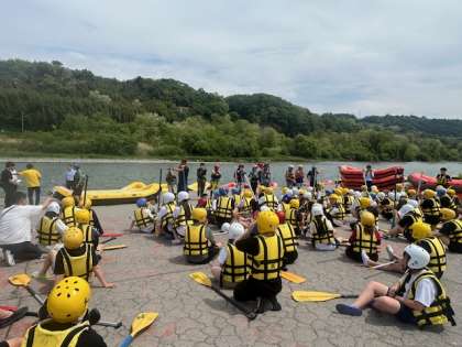 さあ,いよいよラフティング体験です!写真からも緊張感(ワクワク?)が伝わります!