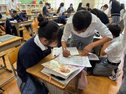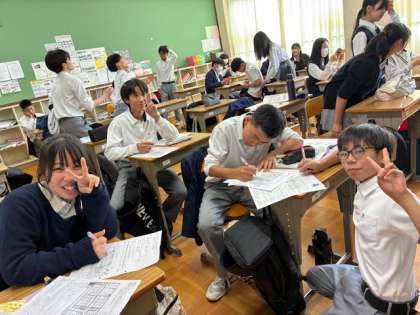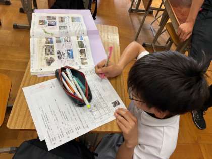 本日4限、3年生家庭科の授業後の様子です。教材にはアニメ「サザエさん」一家の間取りが使われており、授業が終わった後も夢中になって話し合ったり、ワークシートに記入したりとがんばっていました。授業後の姿しか見ていませんが、この様子だと1時間楽しく家庭科を学べたのだろうな、と嬉しくなりました。