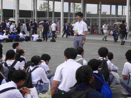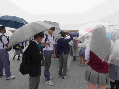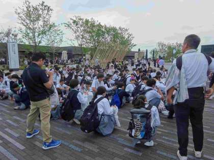 大阪万博最後の集合では,すっかり雨もやみました。めいっぱい仲間と楽しんだことが,深い学びにつながりました。「EXPO 2025」を経験した2年生の皆さんには,今の景色はどう映っていますか?