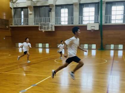 本日放課後、ランチルームと体育館で陸上部がトレーンングを行っていました。写真は二重跳びや鬼ごっこなどを通して体力作りに励んでいる様子です。月曜日に迫る秋季大会の意気込みを副キャプテンに聞いたところ皆「決勝に残りましょう!」と話してくれました。がんばってください!