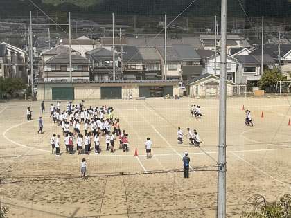 3、4時間目には2年生が学年体育ということで学年種目「台風の目」を練習していました。校舎からの遠目ではありましたが、クラス対抗の実戦形式で大変盛り上がっているのが伝わってきました。
