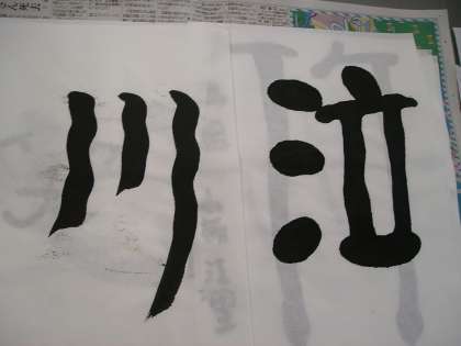 3階の廊下を通ると習字の筆を持った生徒が・・・。筆の洗浄です。教室をのぞくと、練習で使った半紙がいっぱい。しかし、まだやっている生徒はとっても集中していました。職員室で完成品を見せてもらうと・・・・。なかなかの作品がいっぱい。主観で申し訳ありませんが、私が「なかなか」と思うものを紹介させていただきます。