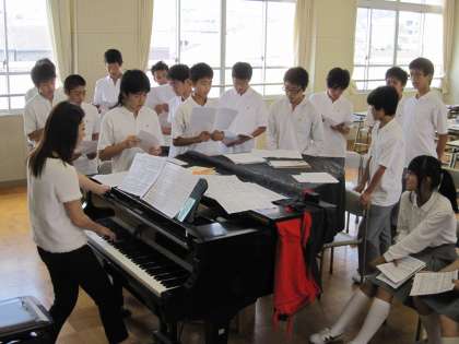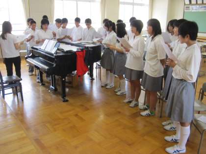 というのも、4組は音楽の授業で、文化祭の合唱を練習していました。まだ何回も練習していないと思うのですが、素晴らしいハーモニーと大きな声で歌っていました。