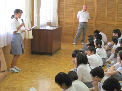 4カ月間の反省と夏休み以降の抱負が各クラスの評議員さんから語られました。