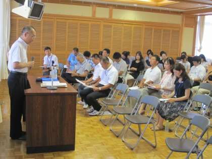 毎年、8月の第1金曜日は、花山中校区の2小学校を迎えて「三校合同研修会」を実施ています。