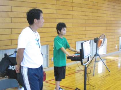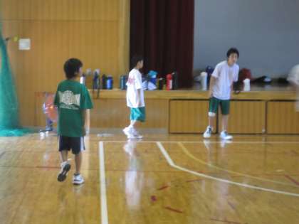 体育館では全面を使って男子バスケットボール部の練習が行われていました。