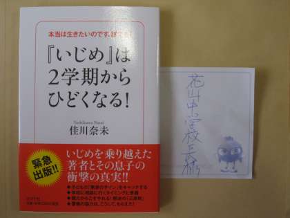 開封すると、写真のとおり、今話題になっている「いじめ」に関する書物でした。