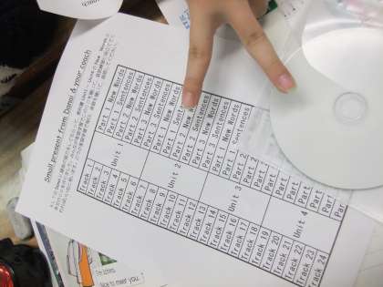 この時間は、授業の途中で全員にCDが配られ始めました。そのCDは、テスト範囲の英語の単語などの発音を、ALT(英語の助手のネイティブの外国人)の方の協力を得て録音したものだそうです。