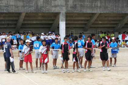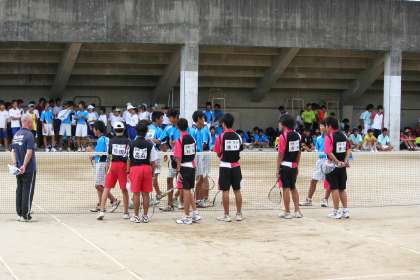 23日(火)午前10:00〜 加茂川中学校で男子テニス部の夏季大会、団体戦の部が行われました。