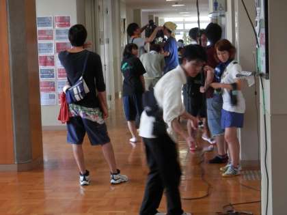 何人かの生徒は、立ち止まって撮影の様子をじっと見ていました。