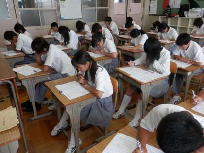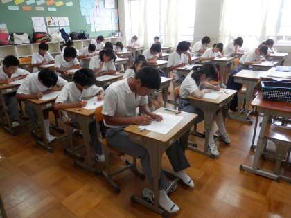 2年生各クラスの、課題テストを受ける様子を紹介します。