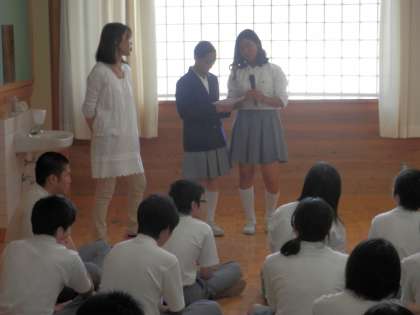 3年生は、多目的室で団結式のようなものを行っていました。