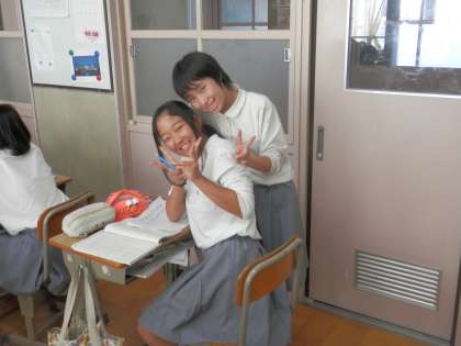 花山中学校では、休み時間に先生が教室にいることは珍しくありません。子ども達も、それをまったく不思議に思ってもいません。