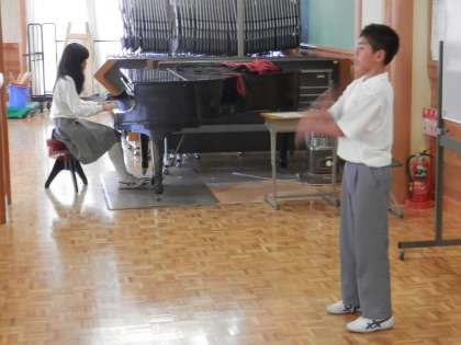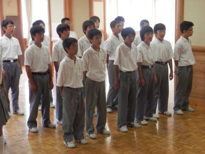 次に訪れた1−1では、出来るだけ先生が前へ出ず、生徒の力で練習をしようと取り組んでいました。歌い終わった後の識者からのアドバイスは、的を得たしっかりしたものでした。