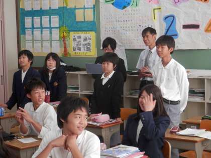 今日の5時間目、茨城大学の齋藤准教授が学生さんを伴って2年生の藤原先生の授業を参観に来られました。