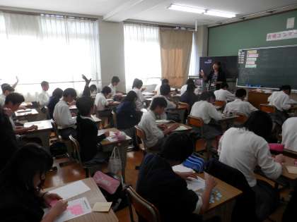出来た人が挙手をして「はい!」と言うと、先生がかかった時間を言います。それをワークシートに記入しておきます。