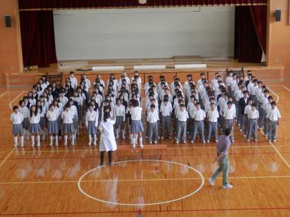 合唱コンクールが始まると、最初のプログラムが1年生の学年合唱です。
