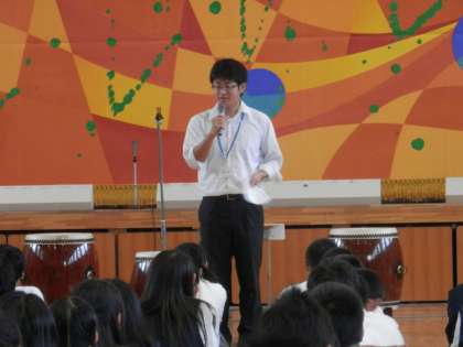 文化図書委員長と文化祭実行委員長の先生からの話の様子です。