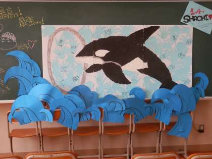 展示物の前でポーズを決める姿は、まるで、その作品を誇っているようです。
