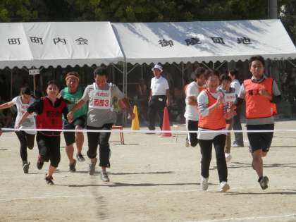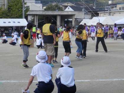 次は、大縄とび、ボール送り競走、アベック風船割り競走の様子です。