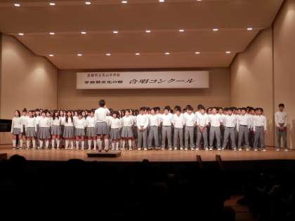 “Amazing!”3年生の学年合唱が終わった瞬間、隣にいたALTのベン先生がそう言いました。指揮をした女子が涙を流しながら帰ってきました。私の頬にも涙が伝っていました。3年生の大きな声の美しく力強いハーモニーに、会場全体が驚きと感動の空気で満たされました。各学級の合唱も素晴らしい出来栄えで、どのクラスが最優秀賞を獲得してもおかしくなかったと思います。これでまた来年度、「去年を越えろ!」と言えます。そのことが何より嬉しいです。