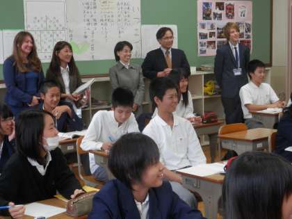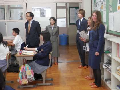 先ずは、6時間目の授業参観にあんないしました。行く先々で「ハロー」という歓迎の声が上がりました。