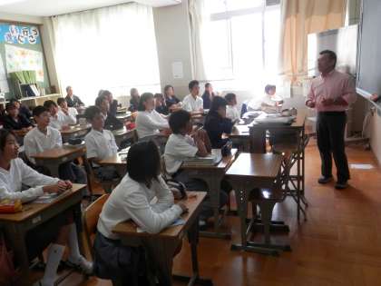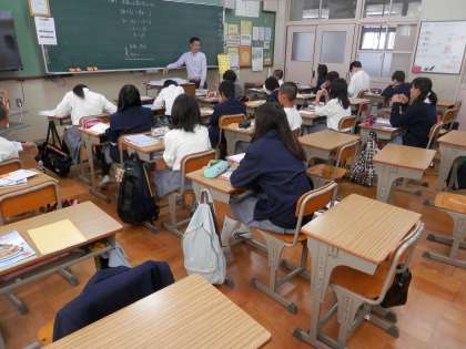 数学の時間の生徒数が少ないようですね。そうです。半分は別の教室で学習しています。1年では数学を分割しています。