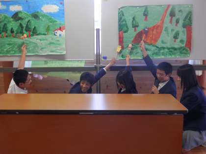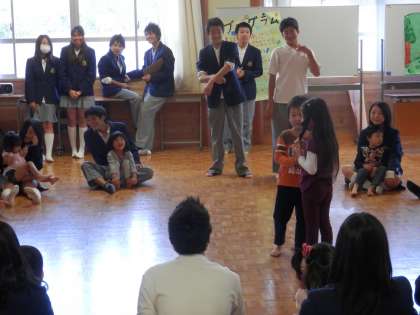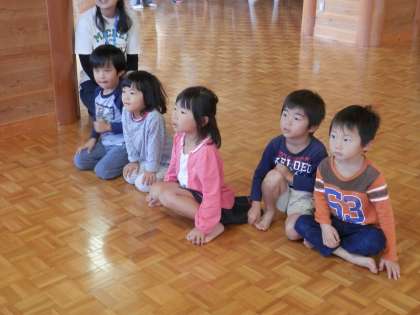 キャレクターが少し小さすぎたかもしれません。でも、園児たちは、とても熱心に見ていました。