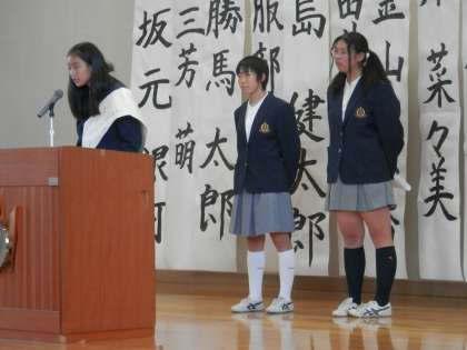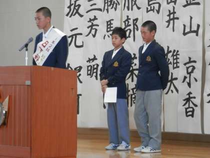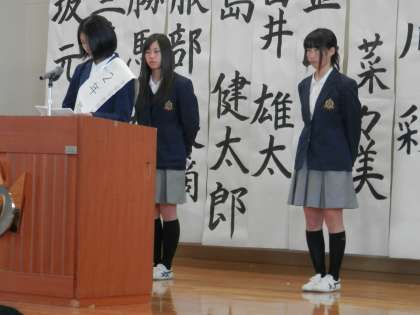 2年副会長候補と1年副会長候補、2年庶務候補の演説の様子です。