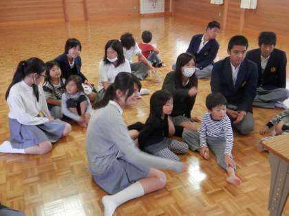 中学生も子ども達の扱いに戸惑っているらしく、上手くいかないところもありましたが、時間と共に上手に指導できるようになってきました。
