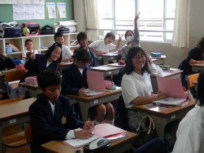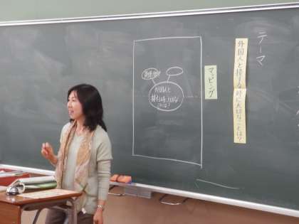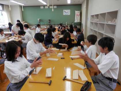 技術の時間には、木材工作をしていました。きりで板に穴を開けるのに結構苦労していました。