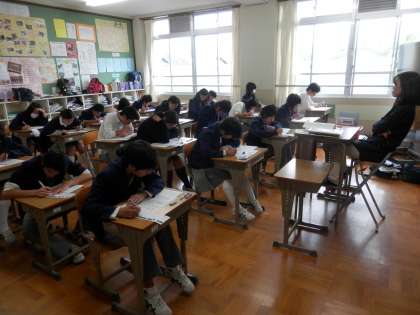 今日から2日間、花山中学校では「第3回定期テスト」です。昨日の放課後、各学年で「学習会」が行われているということでブラっと見に行きました。「校長先生、元々社会の先生やんな!?」と社会科の質問を受けたり、数学の2次方程式に取り組む生徒の横でアドバイスをしたり、結構よい時間を過ごしました。「あっ、そうか!やっと納得できた!」「あれっ、できました。何か分かりました。」という生徒の言葉には何とも言えない喜びとやりがいを感じます。教師は、やはり教えることが主な仕事で、理解出来た瞬間の生徒の目の輝きを見るのが何よりの楽しみです。管理職になって以来、そういう場面から離れているので、時にはこうして教えてみるのもよいものです。