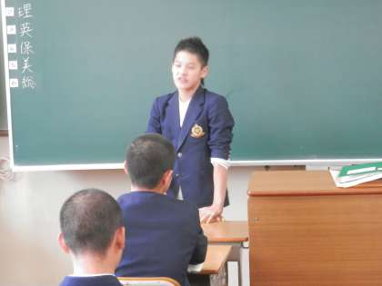 体育委員会では、各学年の代表が半年間の反省を発表しました。