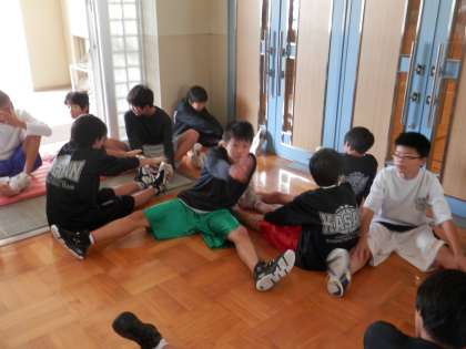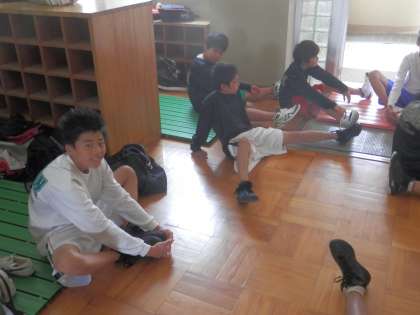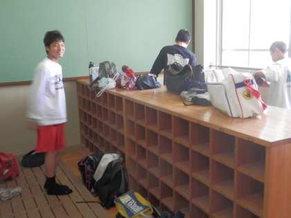 男子バスケットボール部は、午後から2校を迎えて練習試合です。