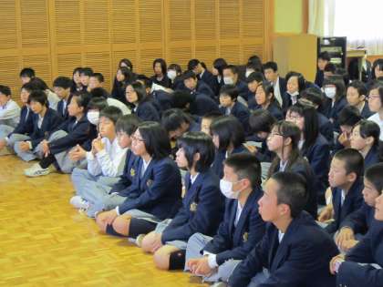 4時間目、明日からのチャレンジ体験に向けて、2年が学年集会をもち、決起集会を行いました。