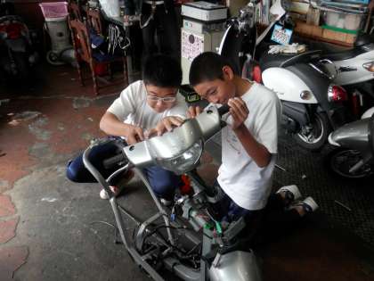 次は、バイク屋さんとお風呂屋さんで働く様子です。