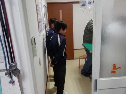動物病院に行った時、生徒達は、ちょうどワンちゃんの治療を見学しているところでした。いつもは、カメラに向かって最高の笑顔を向けてくれる子たちですが、流石にこのときはそれができませんでした。これも正しい態度だったと思います。