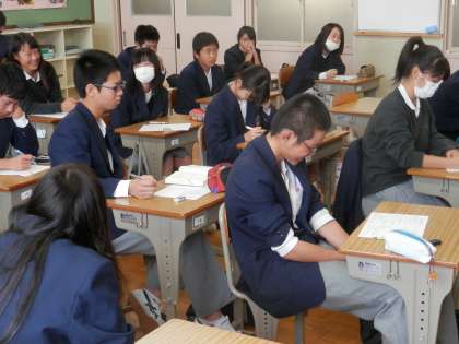 5時間目、3年生は進路に向けての取組を行っていました。どのクラスも面接試験に関して勉強していました。