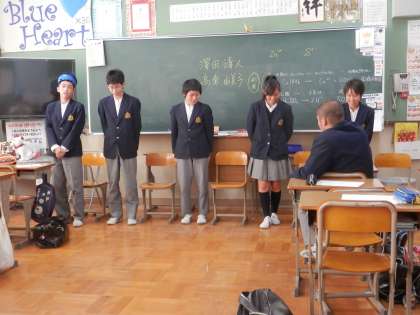 あるクラスの入ると、集団面接の練習をしていました。