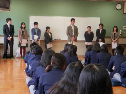 学校長の話に続いて、講師の皆さんの自己紹介と生徒への激励、最後に生徒代表による決意の言葉がありました。、