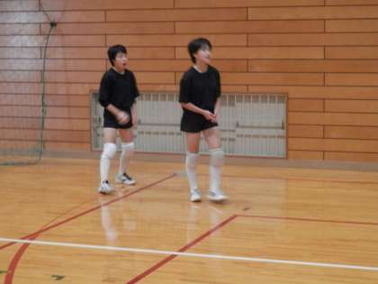 2階の教室で「土曜学習」が行われる一方で、体育館からは元気のよい声が聞こえてきます。女子バレー場の練習です。