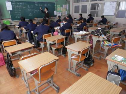 後ろから撮影した写真を見ると、半分の人が別教室で学習していることが分かります。