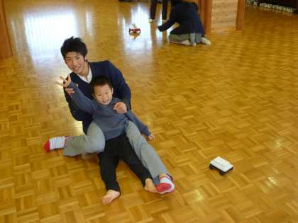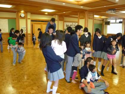 おんぶ・だっこ・肩車と生徒たちも慣れるに従って,触れ合いを楽しんでいます。生徒たちのやさしい笑顔や表情が印象的です。