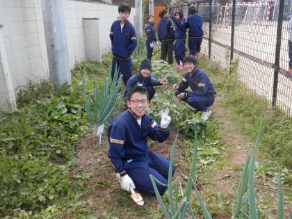 3年の4・5時間目は、総合的な学習の時間を活用しての「秋冬野菜を味わう会」です。9月のはじめに植えた苗が大きく育ちました。