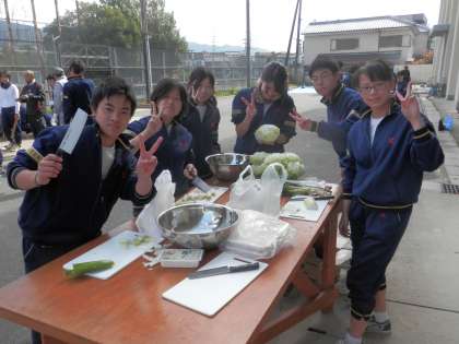 中には、包丁の使い方がとても上手な人がいます。家でお手伝いをしているのでしょうか。女性に先生が上手に大根の皮をむいているのを見て「すげ〜!見直した」なんて言っている人もいました。