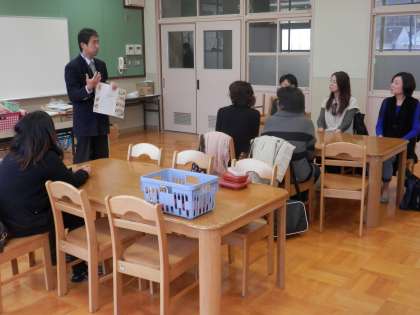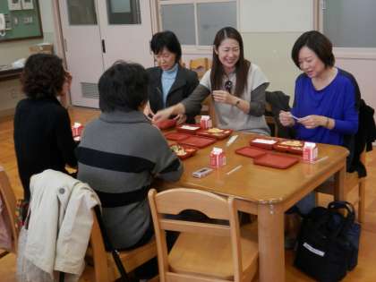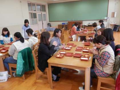 教頭先生から給食の申し込み等についての説明があった後、皆さんで楽しく試食されました。女性の方には少々量が多すぎたかもしれません。
