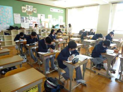 本日,午前中に3年生対象の土曜学習の3会目が行われました。約50名の生徒が,真剣に取り組んでいました。